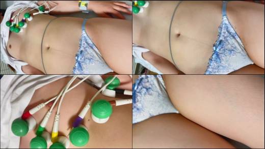 今回はまだ発育中のおっぱいが初々しく、きれいな素肌でついつい悪さをしてしまいました。心電図検査なのでブラを外して、生身のおっぱいをさらけ出してもらい、さらに短パンも脱がせてしまいました。